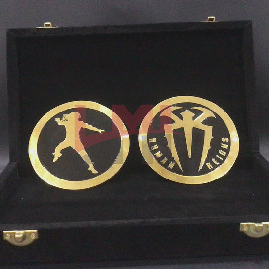 The **WWE Roman Reigns side plates** are an essential addition to any fan’s WWE Championship belt, showcasing the dominant presence of one of wrestling’s top stars. Crafted with precision, these side plates are designed to fit seamlessly onto your belt, bringing a personalized touch that represents Roman Reigns' iconic status in the WWE universe.